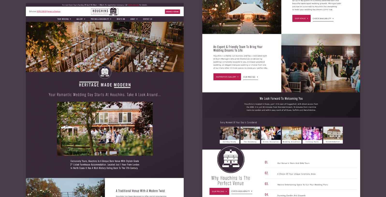 With a new year brings a new site, which leads the visitor through a full journey of their wedding day – from getting ready through to evening reception – and even includes a “For Guests” page that outlines some key info for anyone attending Houchins.
